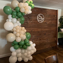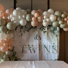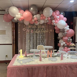 Half arch with stand rental and white curtain backdrop. Custom backdrop can be added! Includes: set up, delivery and clean up